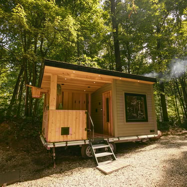Escape to The Haven, a tranquil tiny home tucked beneath the trees on a 40-acre forested property. Here, comfort meets nature with cozy interiors, outdoor lounging and cooking spaces, and an included 3-hour Nordic spa experience featuring a cedar wood-burning sauna and seasonal cold plunge. Designed for calm, clarity, and slow moments, it’s the ideal place to restore your mind and body.
